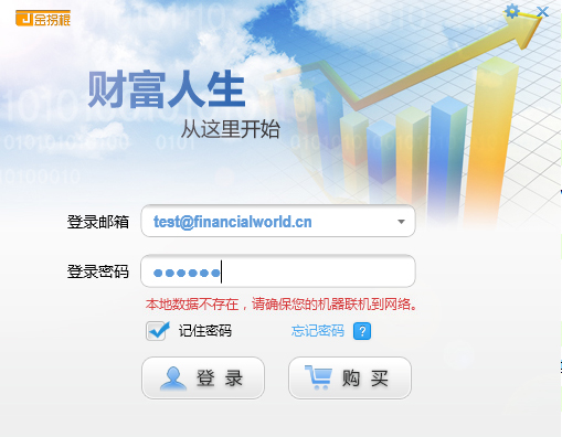 - 第(di)一(yi)次(ci)登(deng)錄(lu)必(bi)須(xu)在(zai)線(xian),由(you)於(yu)係(xi)統(tong)要(yao)同(tong)步(bu)大(da)量(liang)數(shu)據(ju),在(zai)登(deng)錄(lu)過(guo)程(cheng)中(zhong),您(nin)可(ke)能(neng)需(xu)要(yao)等(deng)候(hou)一(yi)段(duan)時(shi)間(jian)。以(yi)後(hou)登(deng)錄(lu),可(ke)以(yi)離(li)線(xian),但(dan)是(shi)隻(zhi)能(neng)使(shi)用(yong)理(li)財(cai)規(gui)劃(hua)、金融工具中的金融計算器,其他功能由於需要下載最新的金融數據,所以僅支持在線使用。