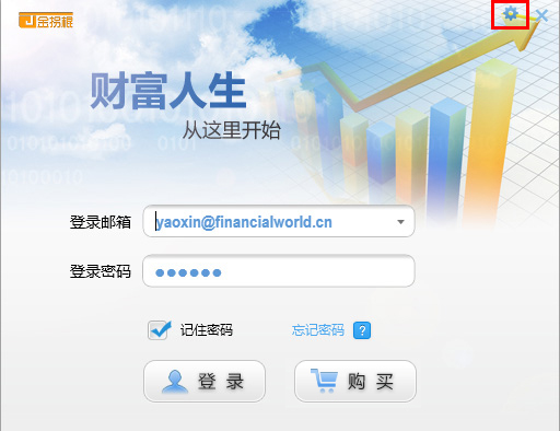 - 第一步:打開金拐棍軟件至登錄界麵,點擊登錄界麵右上角的設置按鈕。