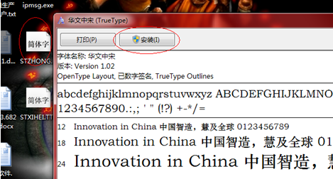 雙擊兩個字體文件“STXIHEI.TTF”和“STZHONGS.TTF”,點擊安裝。